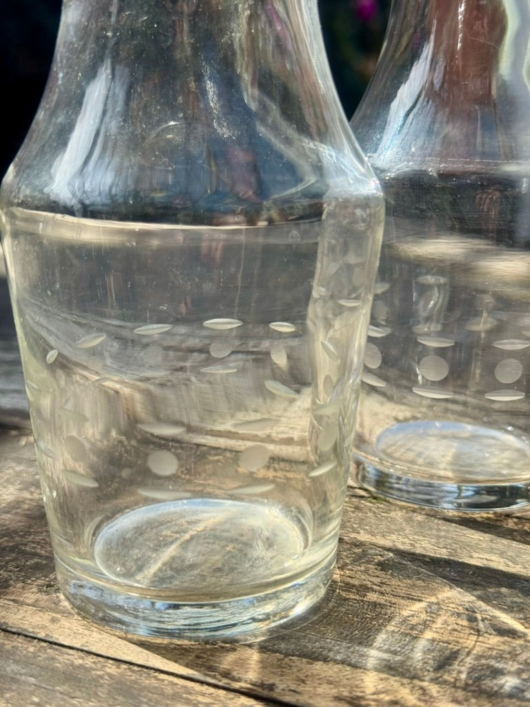Paire de petites carafes en verre